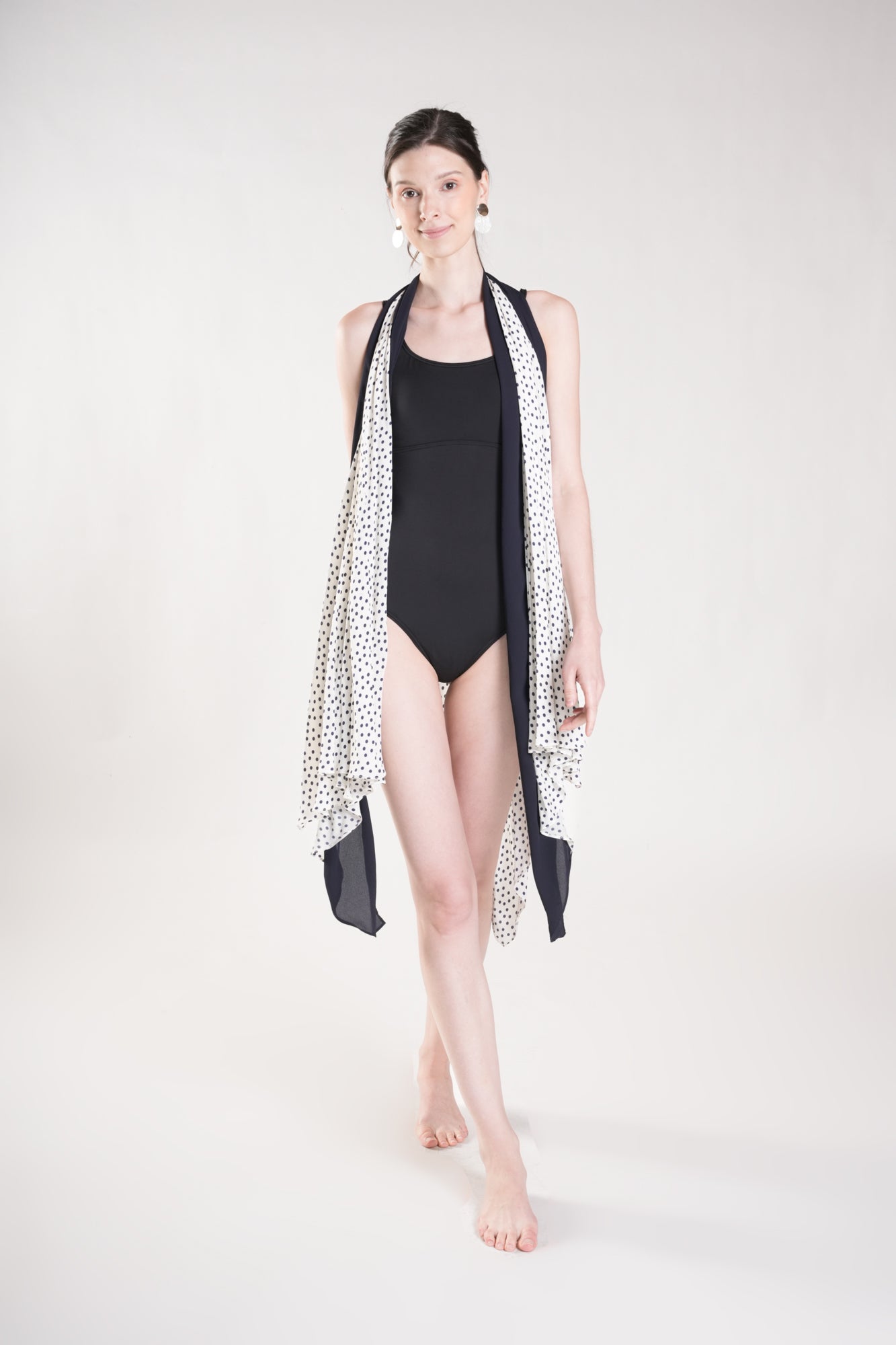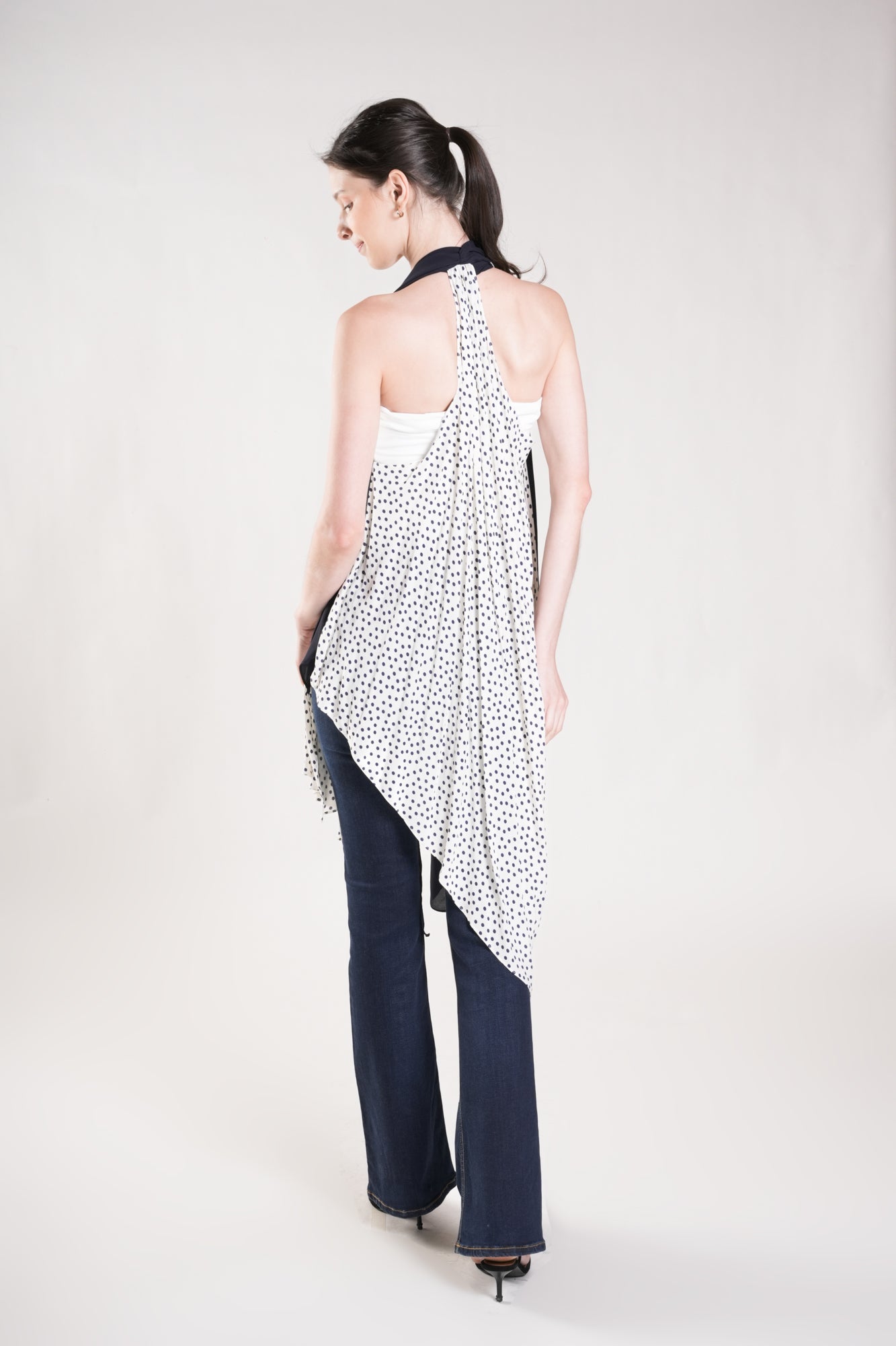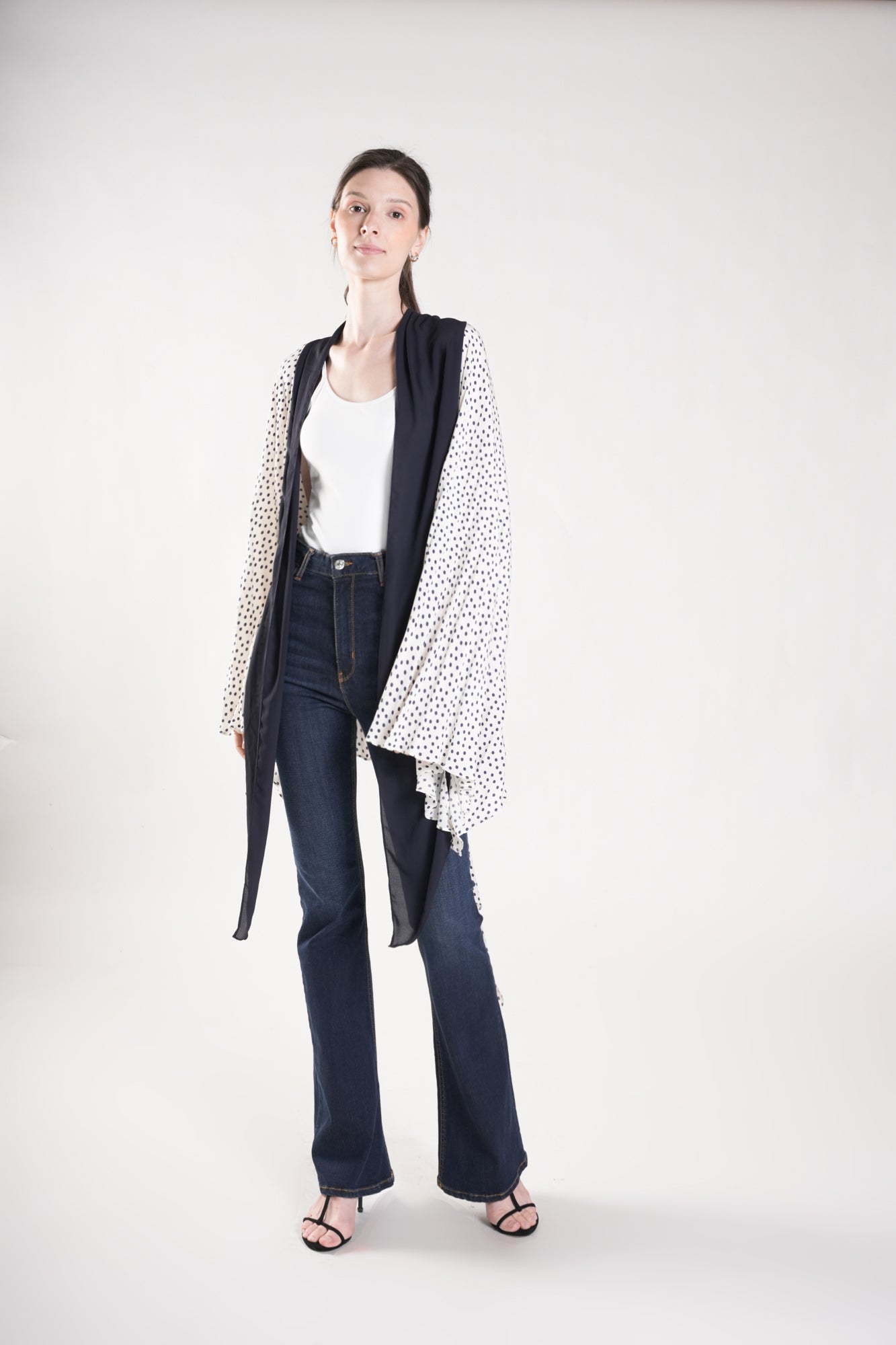 HUMPHRIES Two-Way Draped Kimono (Polka Dot and Navy)