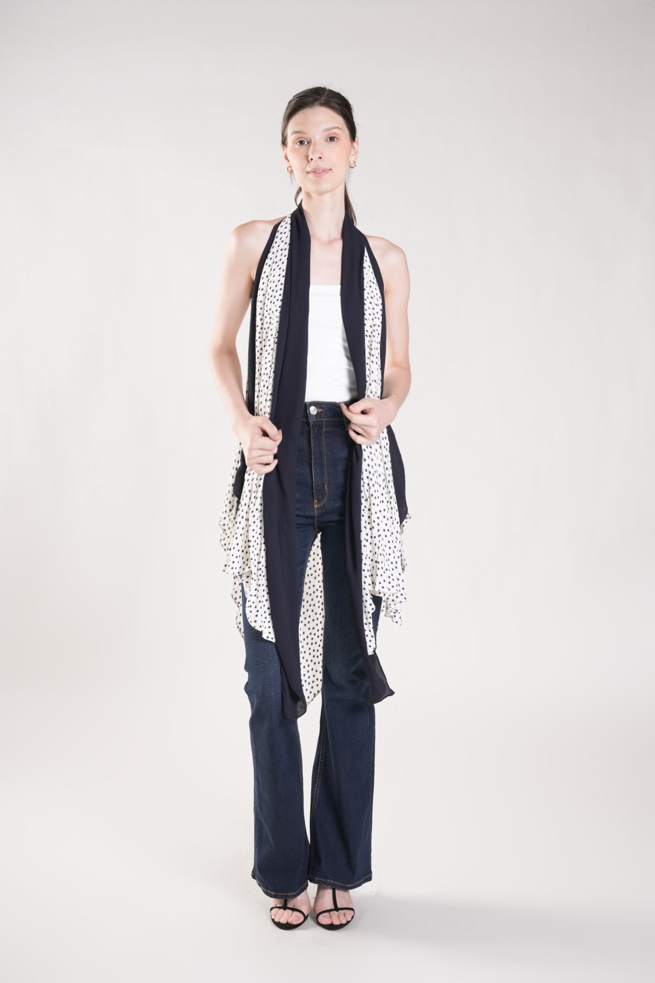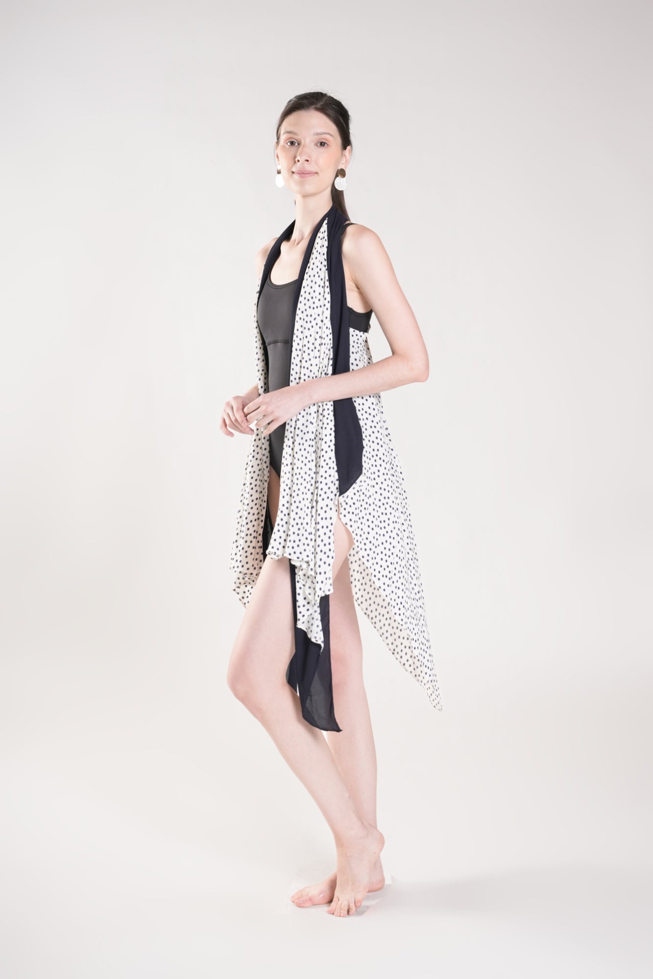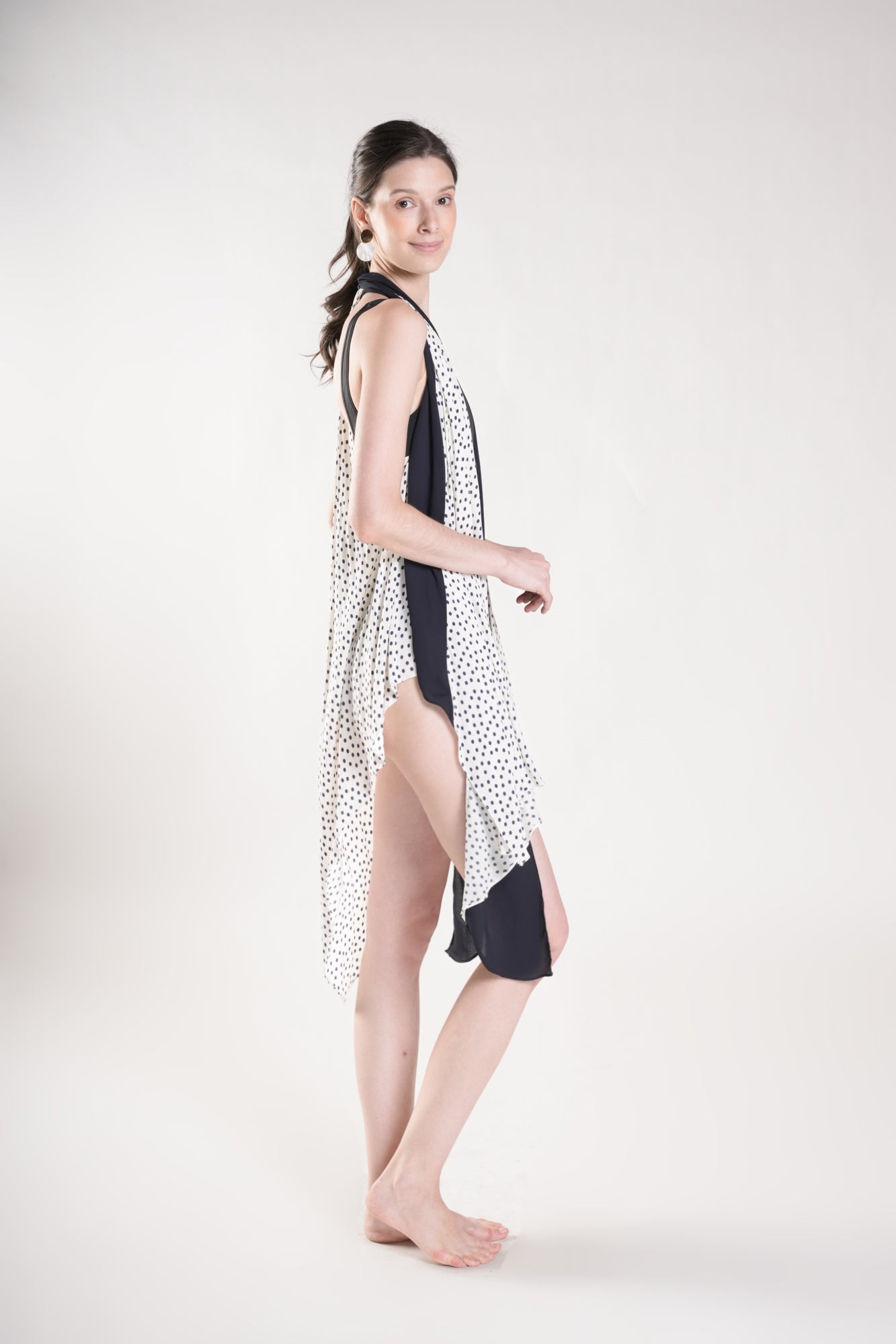 HUMPHRIES Two-Way Draped Kimono (Polka Dot and Navy)