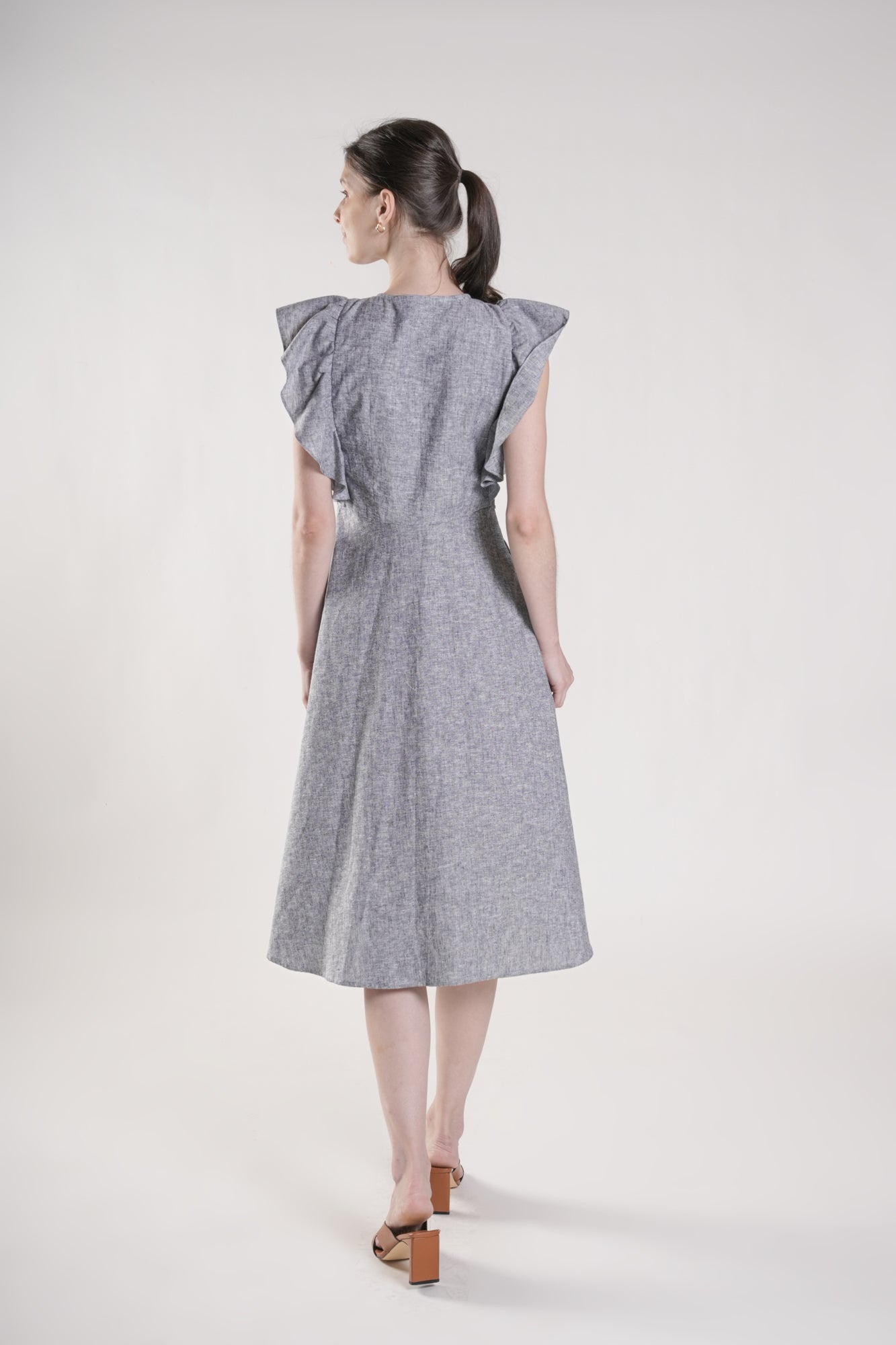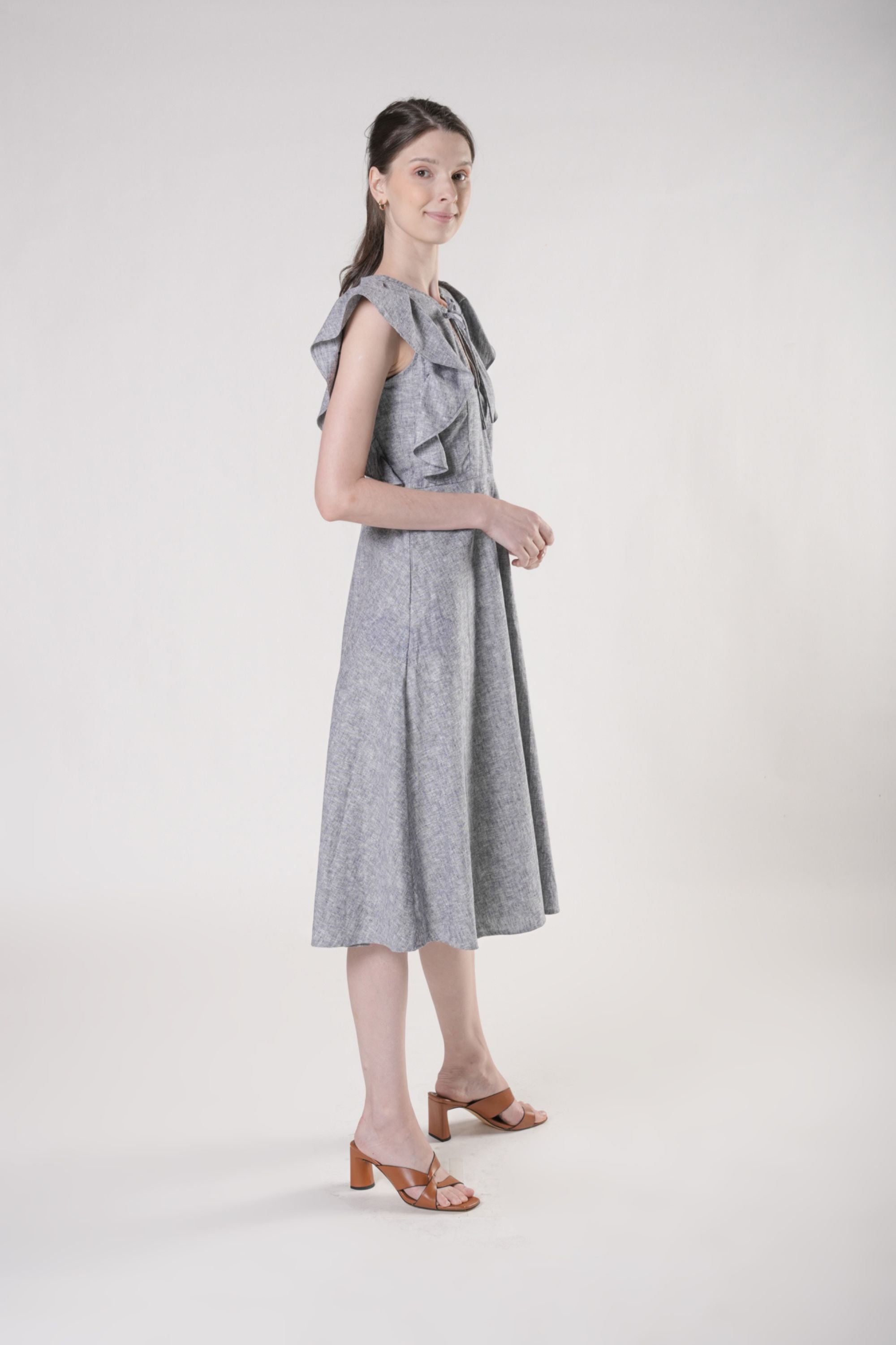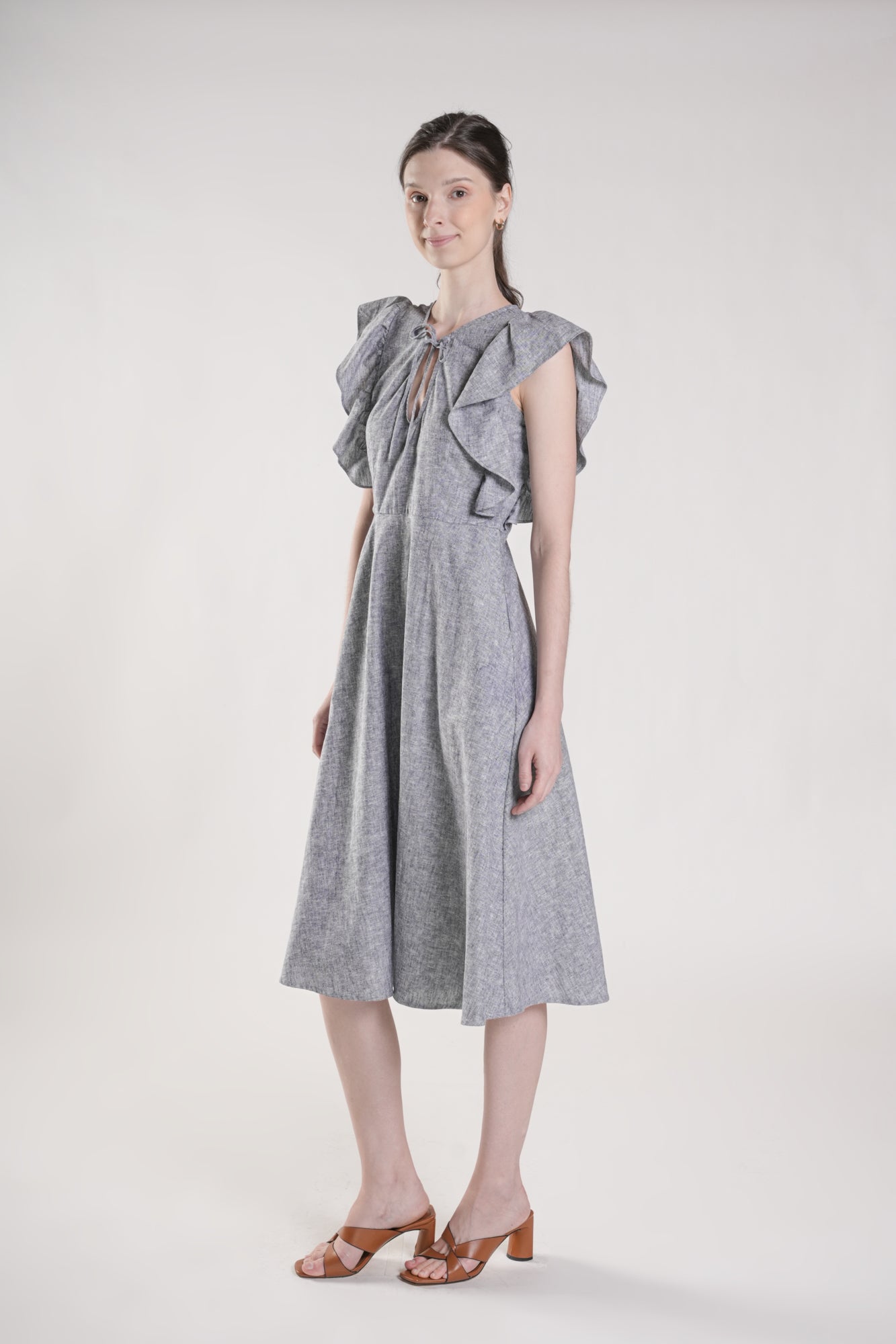 AIYA Midi Dress with Flutter Sleeves (Chambray)